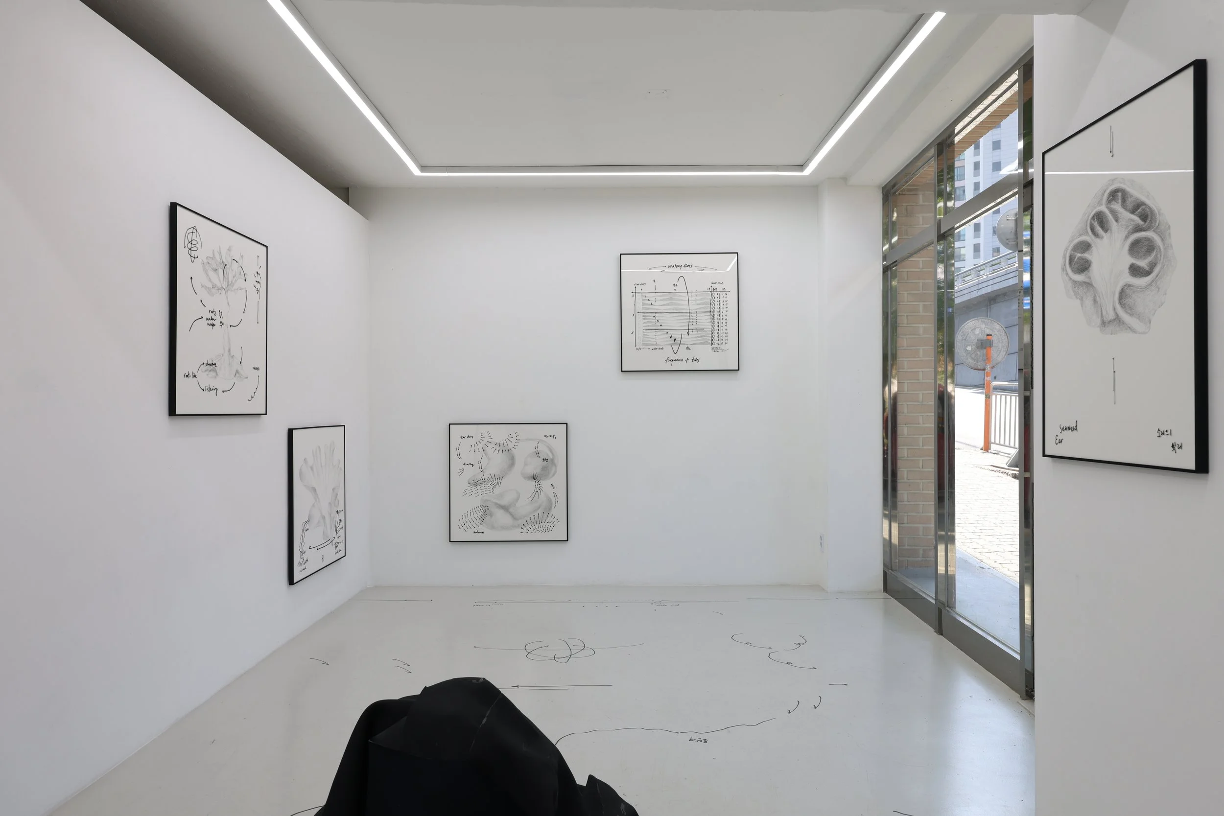 새롭게 선보이는 아티스트북 『내가 헤엄치는 이유』의 프리뷰, 리서치 드로잉 시리즈 《말하는 물, 쓰는 몸, 04-13》, 설치 작업 〈물살 1-2〉을 통해, 물과 숨의 언어를 듣고, 읽고, 감각할 수 있는 공간으로 초대한다.